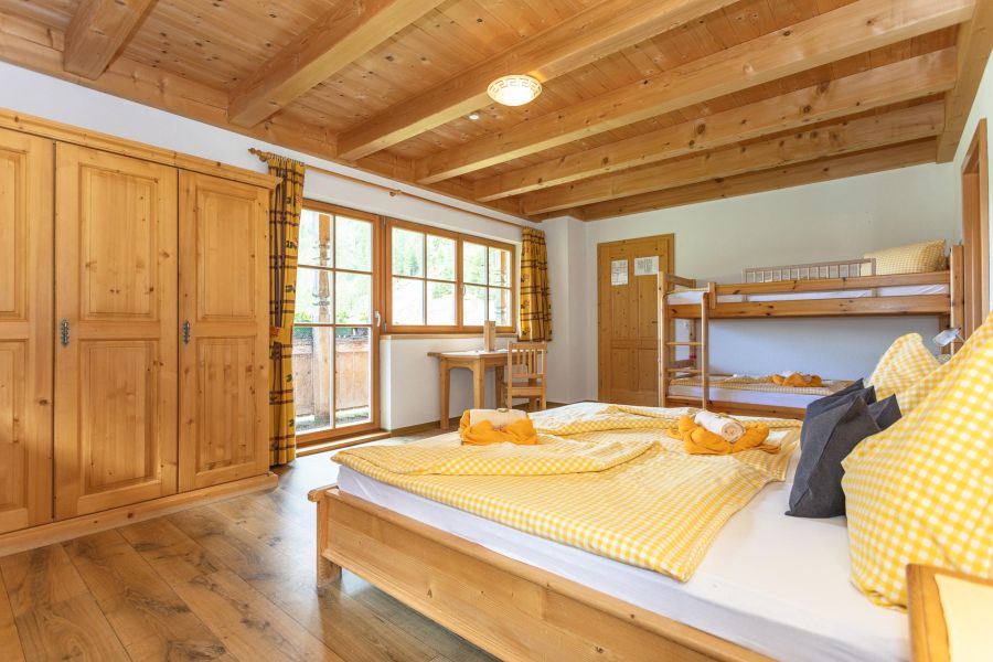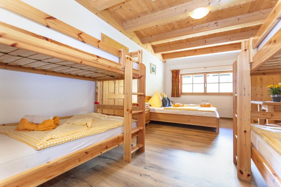 Unsere Familienzimmer in der Enzianhütte besitzen alle ein Doppelbett und ein Stockbett, welches zusätzlich Platz für zwei Personen bietet. In den Familienzimmern befindet sich zudem ein großer Kleiderschrank. Zum Teil besitzen unsere Familienzimmer in der Enzianhütte einen Balkon mit herrlichem Blick ins Habachtal. Jedes der Familienunterkünfte hat ein eigenes Bad mit Dusche und WC.